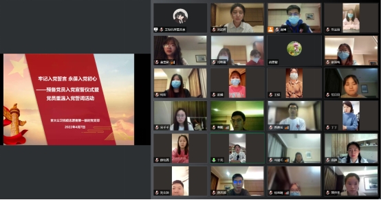 抗疫志愿者第一临时党支部在抗疫前线开展线上预备党员入党宣誓仪式暨党员重温入党誓词活动。