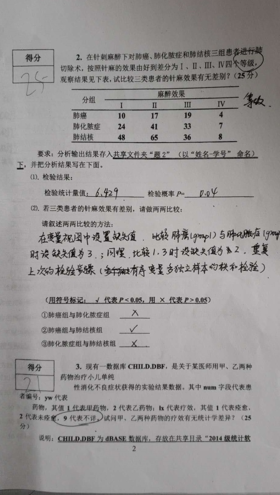 修改原因:卷面核分错误