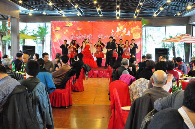新一任领导班子与大家见面,然后李娟院长做新年致辞,她简单总结了学院过去一年取得的成绩,并对学院新的一年和学院的未来发展进行展望。然后老院长于雅琴教授为新老员工送上节日的祝福。最后,副校长兼医学部学部长王冠军讲话,他认为此次联谊会的主题,反映了学院新一任领导班子对学院今后发展的理念。在送上新年祝愿的同时,王校长向师生介绍了今后医学教育发展的方向和目标,并描绘了医学部今后的蓝图。联谊会的第二部分是文艺汇演,由本科生、研究生和教师同台奉献的文艺节目精彩纷呈,给联谊会的气氛推向高潮。不论是激情高亢的独唱、充满异域风情的阿拉伯舞蹈、京剧反串,还是古筝笛子合奏表演,都让观众掌声和欢呼声不断。一方面体现师生的多才多艺,另一方面也反映了学院校园文化的丰富多彩。演出结束后师生共进午餐。