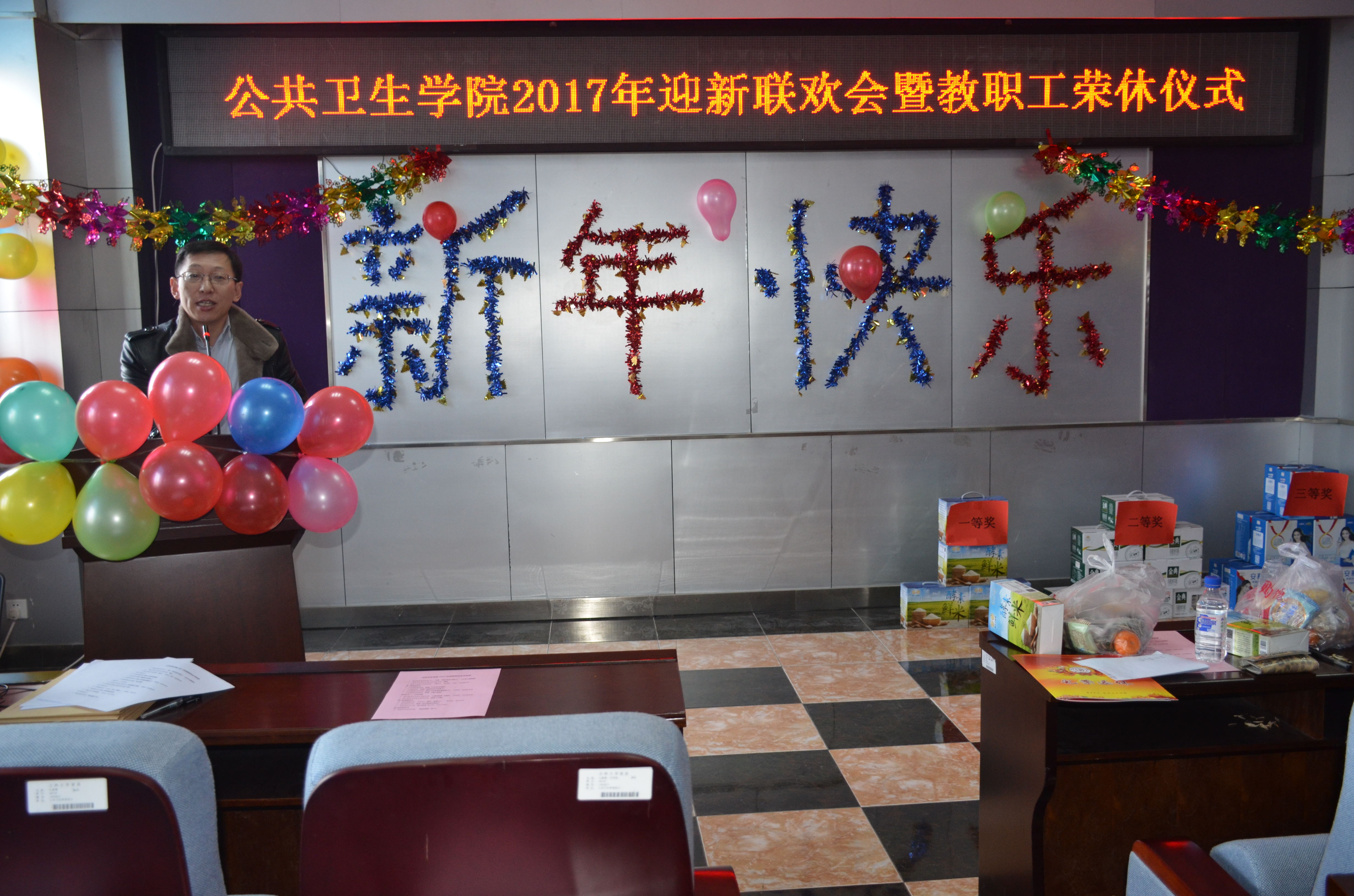 迎新联欢会在一曲合唱《我们走在大路上》、《公卫人唱新歌》中拉开序幕,接着各科室的舞蹈、合唱、独唱、诗朗诵、小提琴独奏《鸿雁》、脱口秀《2016那年、那事儿》、即兴表演等纷纷上演,将联欢会推向一个又一个高潮,在节目中穿插的游戏环节和抽奖环节更是活跃了现场气氛,掌声、欢笑声、呼喊声此起彼伏,精彩纷呈,整场晚会历时近3个小时,最后在一曲合唱《相亲相爱的一家人》中落下帷幕,全院教职工在欢声笑语中迎接即将到来的假期和新年!