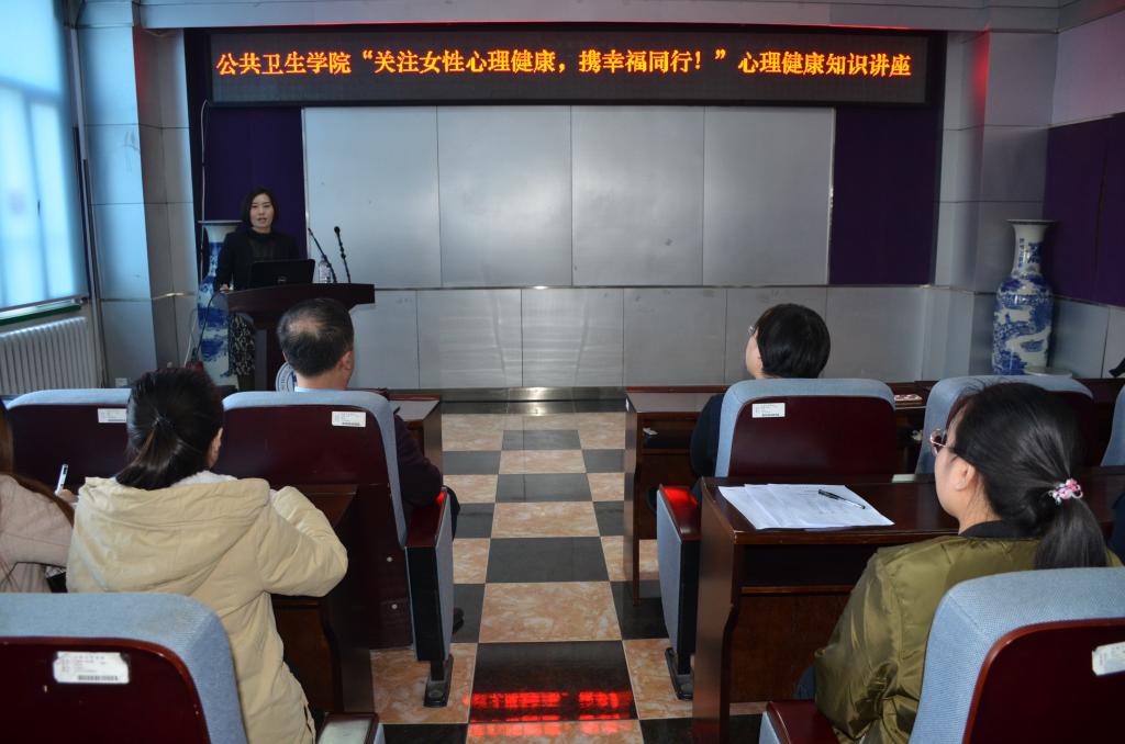 院长刘雅文参加此次活动。学院党委副书记兼副院长刘丽主持了本次讲座。讲座邀请到长春市第六医院业务院长张延赤主任医师,为大家讲授了题目为《关注女性心理健康,携幸福同行!》的讲座。学院的女老师和女学生参加了讲座。