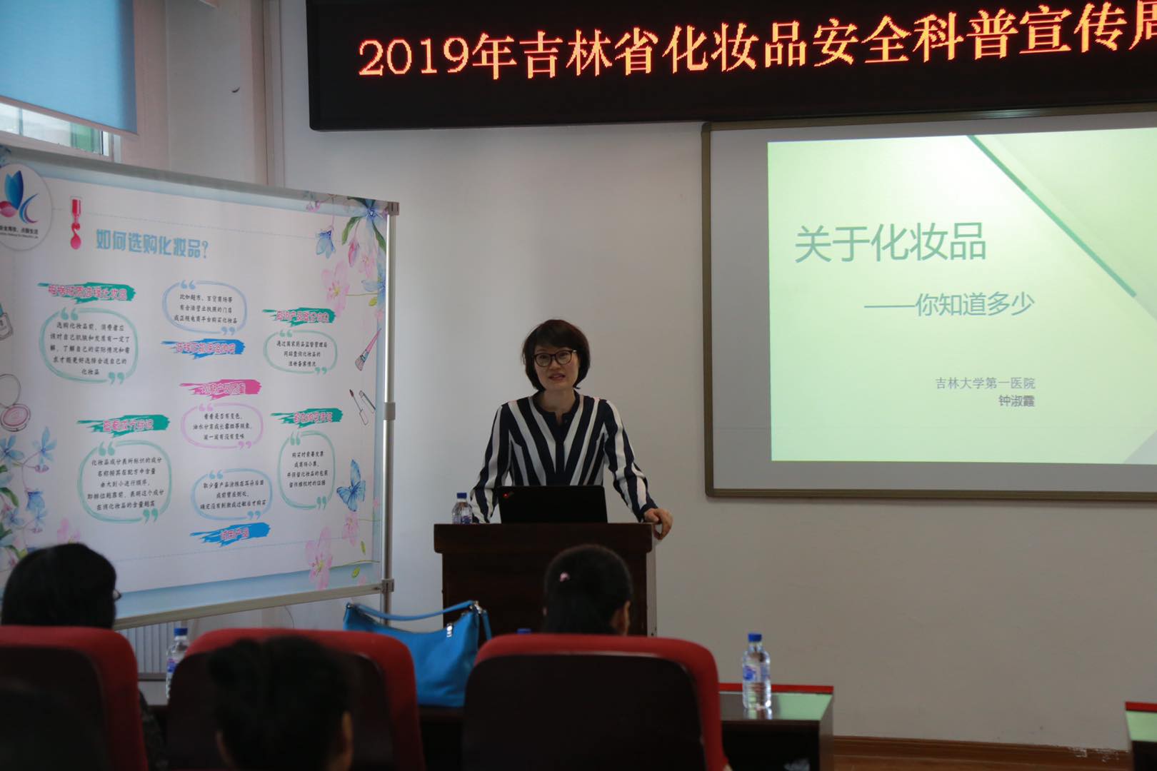 妇委会在流病报告厅举办化妆品安全知识讲座活动。吉林省药品监督管理局为本次讲座精心制作了化妆品安全知识宣传标语、科普动漫、知识展板等。讲座邀请吉林大学第一医院皮肤科教授钟淑霞。