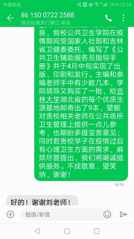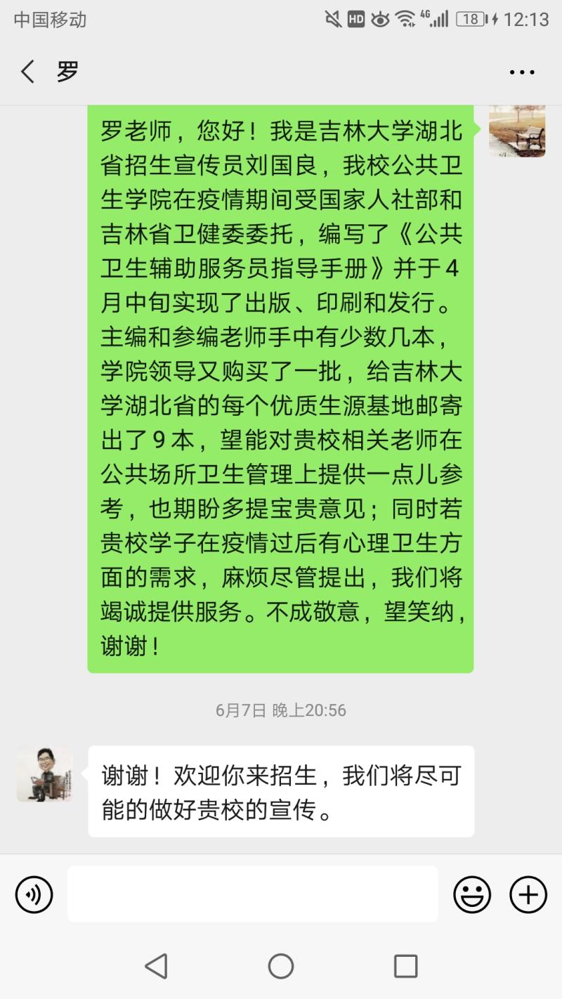 联合行政学院开展“心系基地,携手抗疫”活动,面向武汉市第一中学、黄冈中学、武汉外国语学校、湖北省孝感高级中学等21个吉林大学“优秀生源基地”,免费邮寄了200本《公共卫生辅助服务员指导手册》。