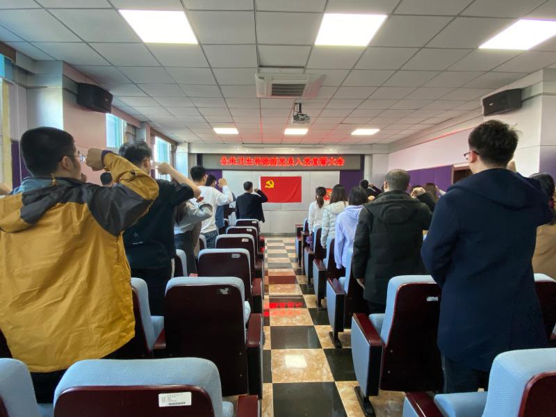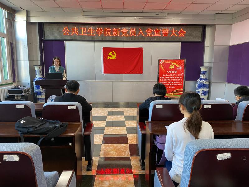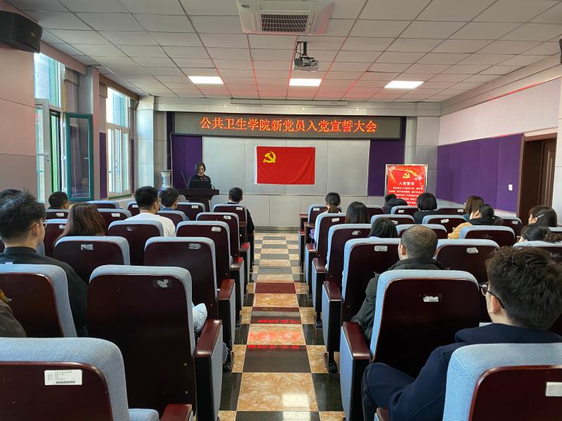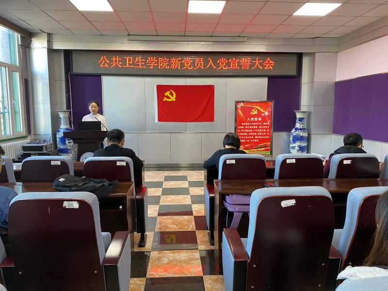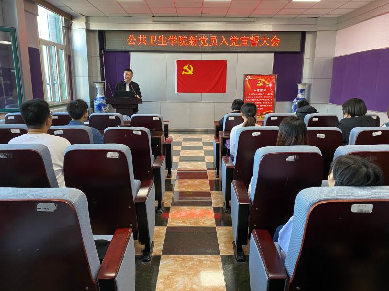 新党员入党宣誓大会随着《国际歌》的演奏,严肃而庄严的拉开了序幕。全体起立,表达着每个党员的高尚敬意,首先由刘丽书记宣读新党员名单,随后便是神圣的新党员宣誓和老党员重温入党誓词的环节。在苏国范老师的领誓下,全体党员立正,面向党旗举起右手,发出了铿锵有力、掷地有声地宣誓之声:“我志愿加入中国共产党,拥护党的纲领……”。眼中满是坚定和热忱,传递着公卫学子对党和国家的热爱和忠诚。