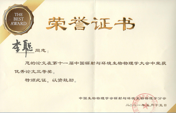 本次会议为全国本领域的科技工作者提供学术交流的平台,交流本领域的最新研究进展和科研成果,达到了相互交流、开拓思路、加强合作,促进学科发展与人才培养的目的。大会设立了特邀报告、分会报告和优秀论文评选等学术交流形式,我院共提交15篇论文及摘要。在优秀论文评选的环节中,李聪硕士研究生获得了三等奖,为日韩av