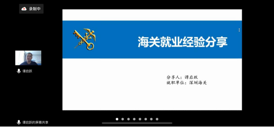 第二位主讲嘉宾是就职于中华人民共和国深圳海关的谭启跃。他分享了海关工作内容、备考经验、面试要点和就业选择等方面内容,详细介绍了海关各部门岗位分工,结合自身经验介绍了国考备考和面试流程。他强调在备考时要结合当下时事热点,进行实景面试演练,通过实战提升结构化小组面试技能。随后,他为同学们详细介绍了在面试过程中可能出现的问题及解决技巧,并为大家分析了选择岗位时的注意事项。