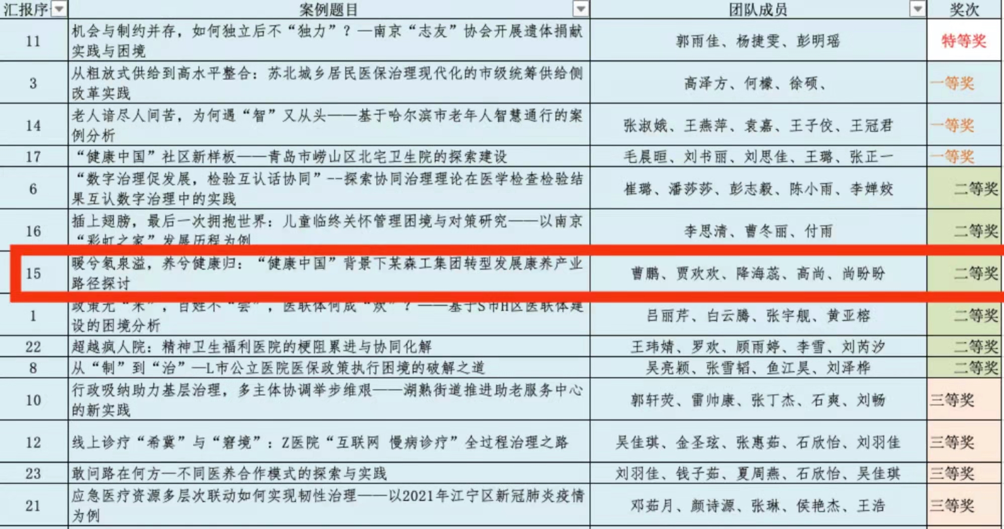 于洗河教授课题组的曹鹏、贾欢欢、降海蕊、高尚、尚盼盼五名同学在疫情期间以承担的课题为依托,凭借案例《暖兮氡泉溢,养兮健康归:“健康中国”背景下某森工集团转型发展康养产业路径探讨》,经过初赛和决赛,最终荣获大赛研究生组二等奖。