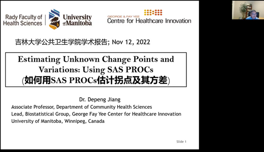 为提升学生的统计分析能力和促进学院学科发展,受学校国际合作与交流处校级高端项目资助。2022年11月12日,学院特邀请加拿大曼尼托巴大学公共卫生学系蒋德鹏教授线上进行高级生物统计方法讲座。蒋教授现为加拿大曼尼托巴大学公共卫生学系终身教授,兼任曼尼托巴大学统计咨询组负责人,同时也是中国教育部“春晖计划”特邀专家。讲座由日韩av